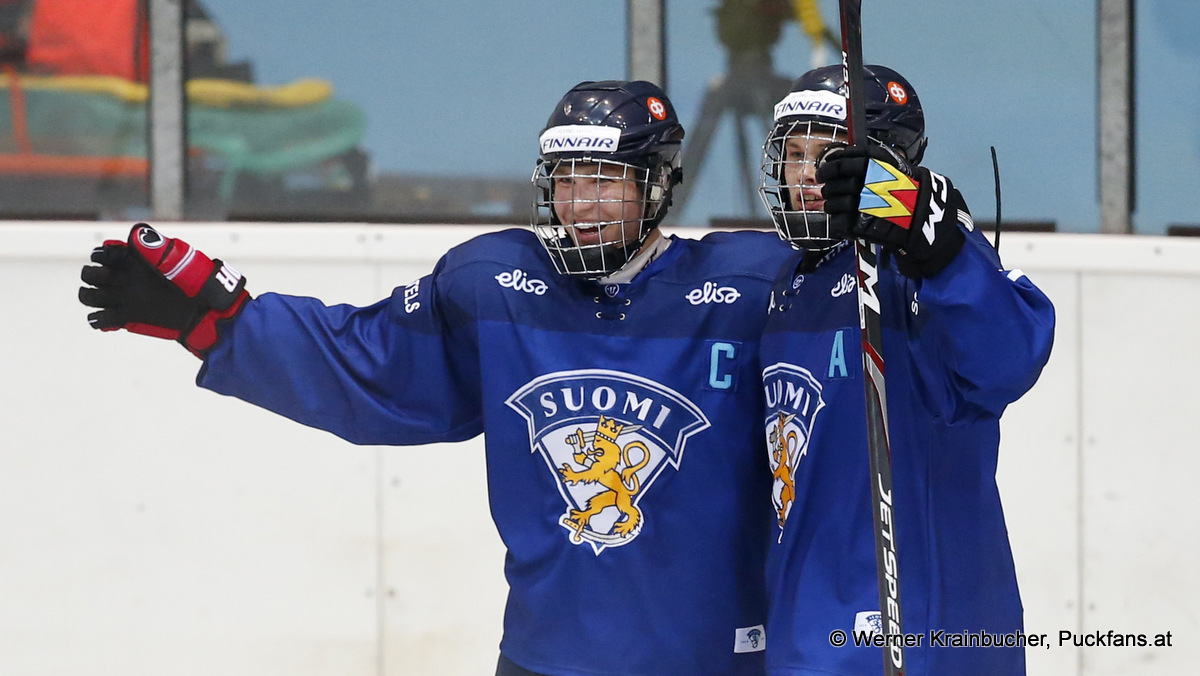Roni HIRVONEN #12 (Finland) & Kasper PUUTIO #7 (Finland); CZE vs. FIN; Hlinka Gretzky Cup; Fosfa Arena, Breclav CZE; 06.08.2019; © Werner Krainbucher