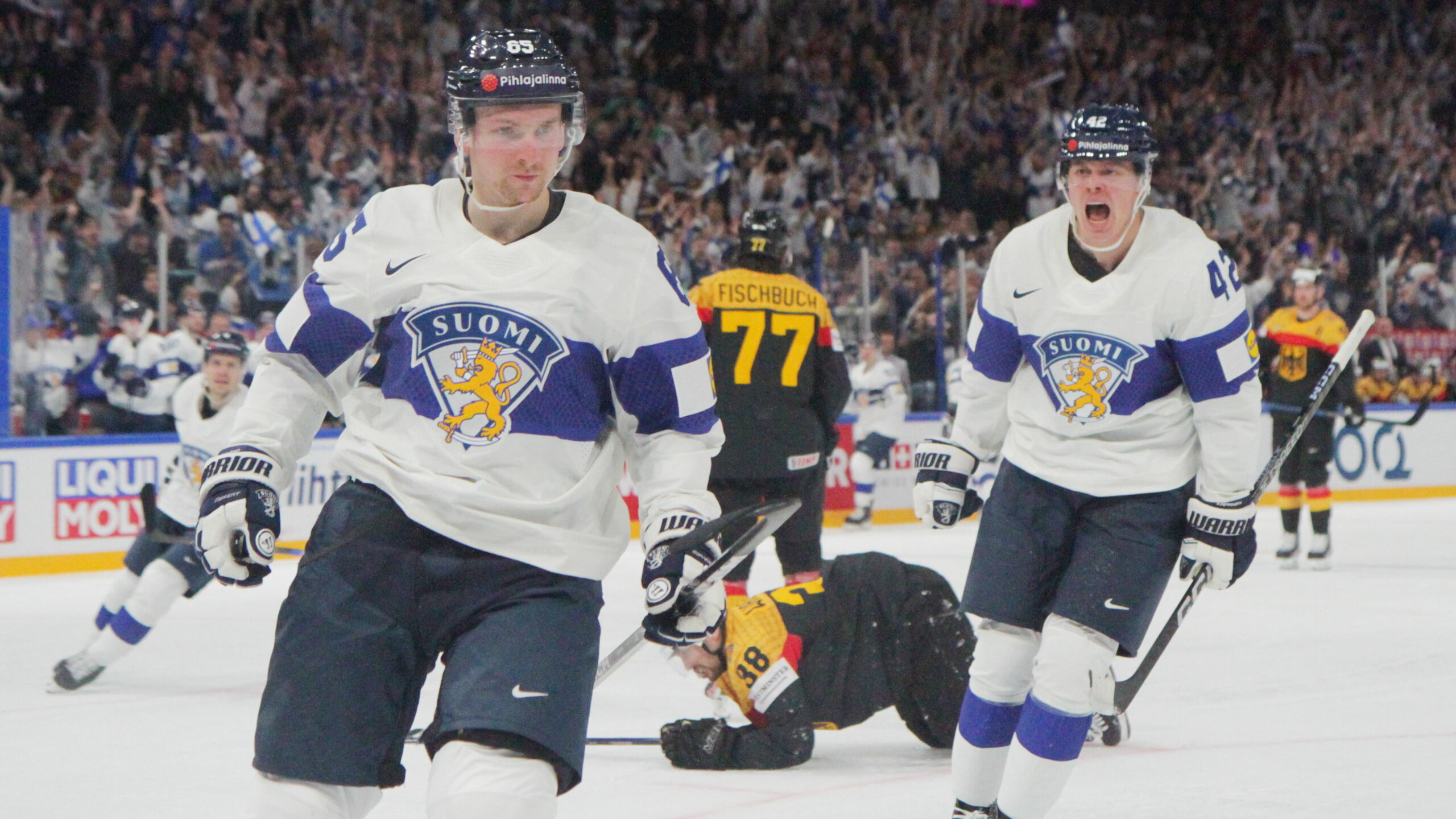 IMG_0148 13. Mai 2023 2560 × 1440 Finnland gewinnt spektakuläres Duell gegen Deutschland IIHF World Championship 2023 GER – FIN Sakari Manninen #65, Kasperi Kapanen #42 Nokia Arena, Tampere © Puckfans.at / Andreas Robanser