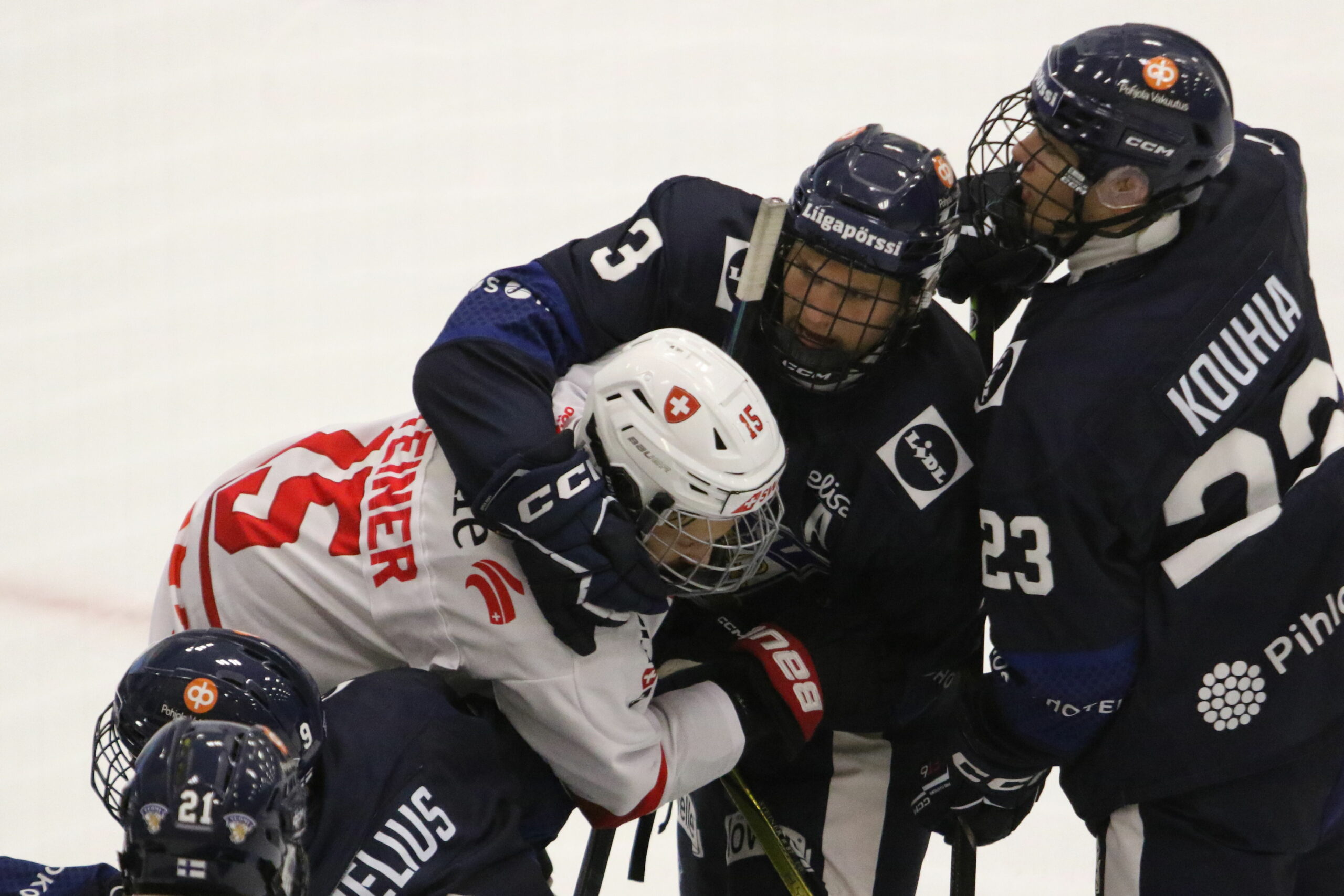 h6T4A2346 9. August 2024 2560 × 1707 Finnland holt sich Platz 7 Lars Steiner #15, Jesper Kotajärvi #3, Lauri Kouhia #23, Hlinka Gretzky Cup 2024 Rnd: 7th SUI – FIN Downtown Community Arena Edmonton, Hockeyfans.ch / Andreas Robanser