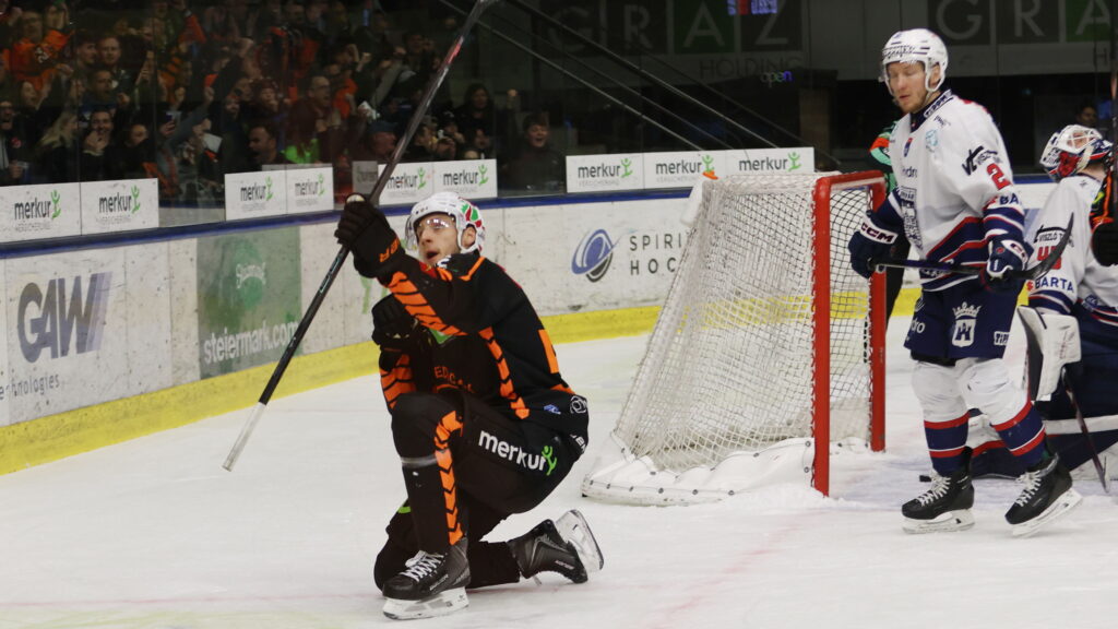 Die Graz99ers feiern gegen Fehervar AV19 auch dank zwei Tore von Paul Huber einen souveränen 4:0 Heimsieg und führen in der Serie damit mit 3:0.