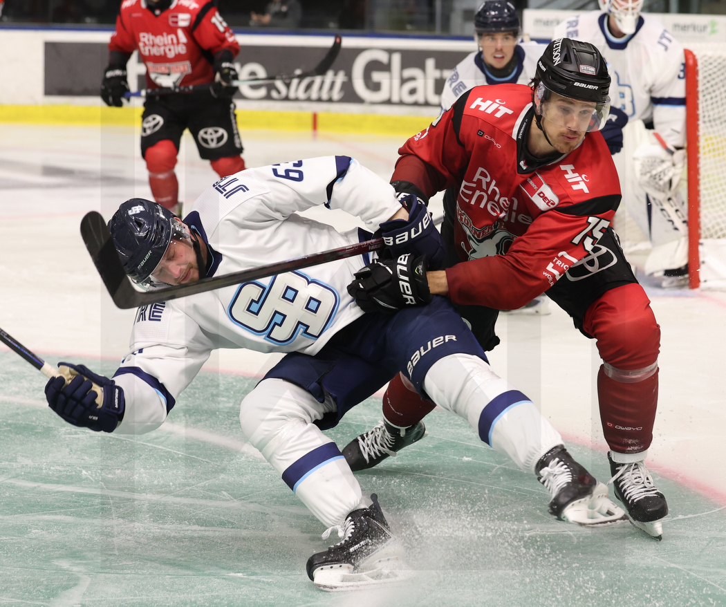 GRAZ, AUSTRIA, 23, Aug, 2025, HC Slovan Bratislava vs. Kölner Haie. Image shows Miroslav PREISINGER #63 (HC Slovan Bratislava) & Luca MÜNZENBERGER #75 (Kölner Haie). Photo: Werner Krainbucher