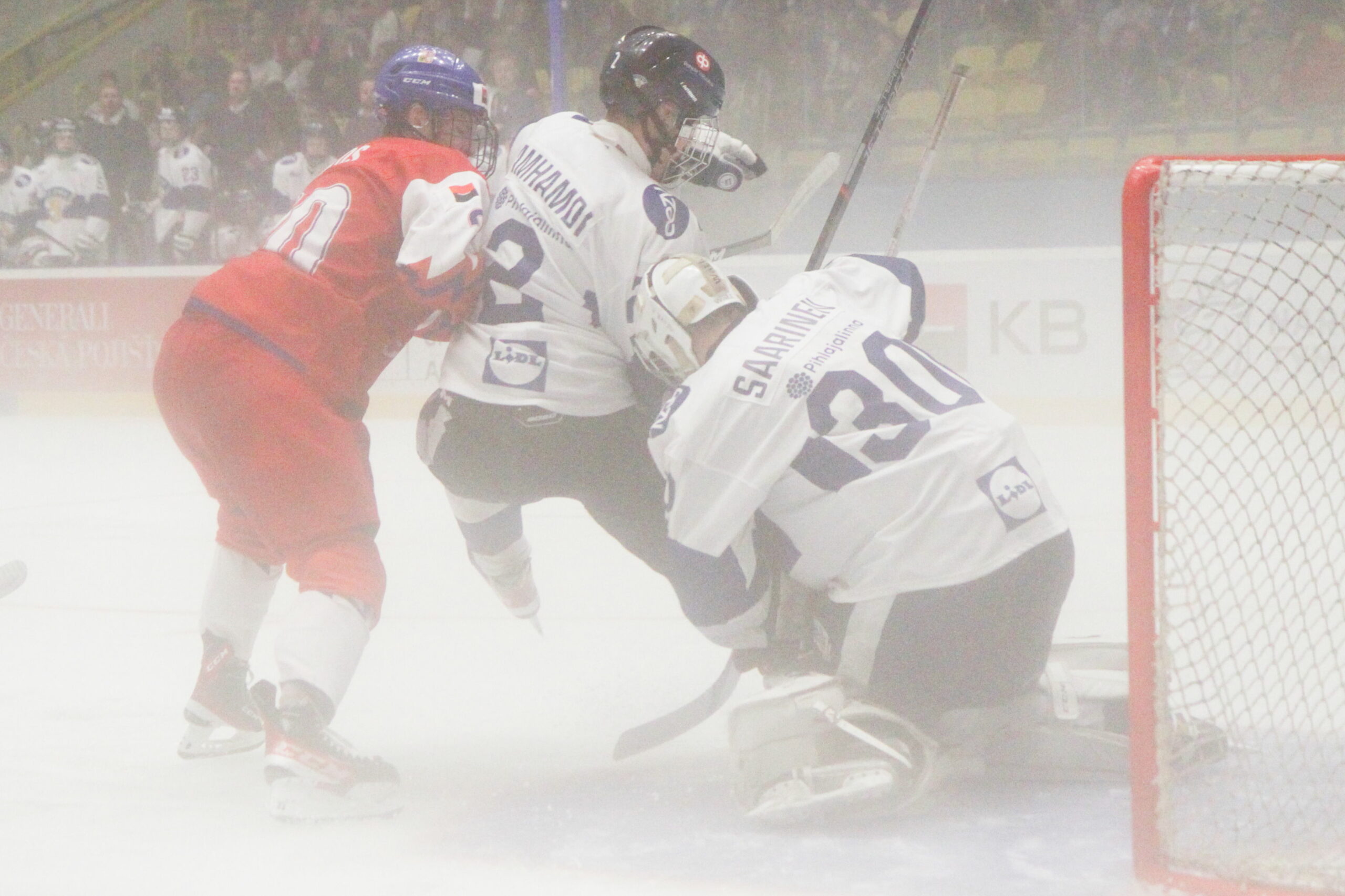 Ondrej Kos #20, Onni Amhamdi #2, Kim Saarinen #30, ,Hlinka Gretzky Cup Semifinal CZE – FIN, Zimni Stadion Breclav, © Hockeyfans.ch / Andreas Robanser