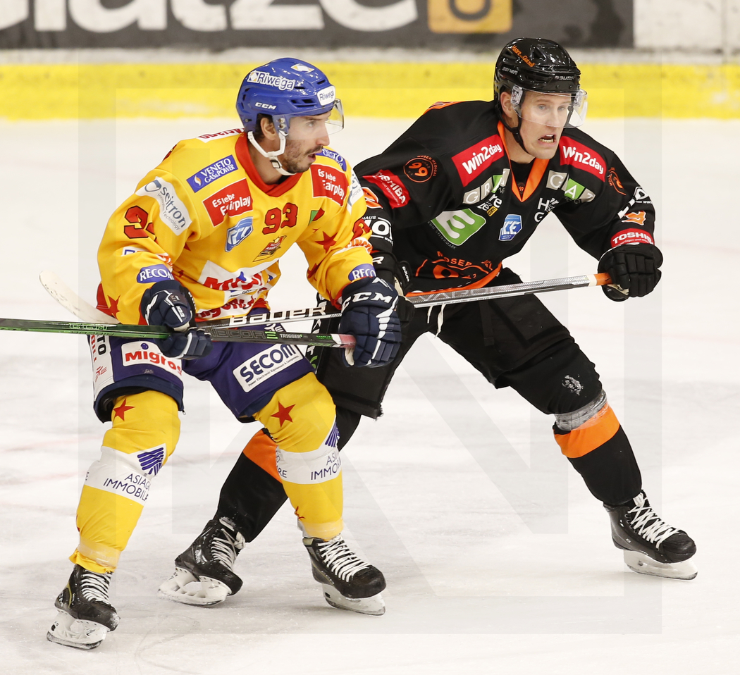 GRAZ, AUSTRIA, 20.Dec. 2022 – Moser Medical Graz 99ers vs. Migross Supermercati Asiago. Image shows Martin CASTLUNGER #93 (Migross Supermercati Asiago) & Aleksi SALONEN #9 (Moser Medical Graz 99ers). Photo: Werner Krainbucher