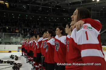 IIHF U20 World Championship Div I Group AAlbert Schultz-EishalleGER – AUTTeam Austria bei der HymneAndreas Robanser/IIHF.com