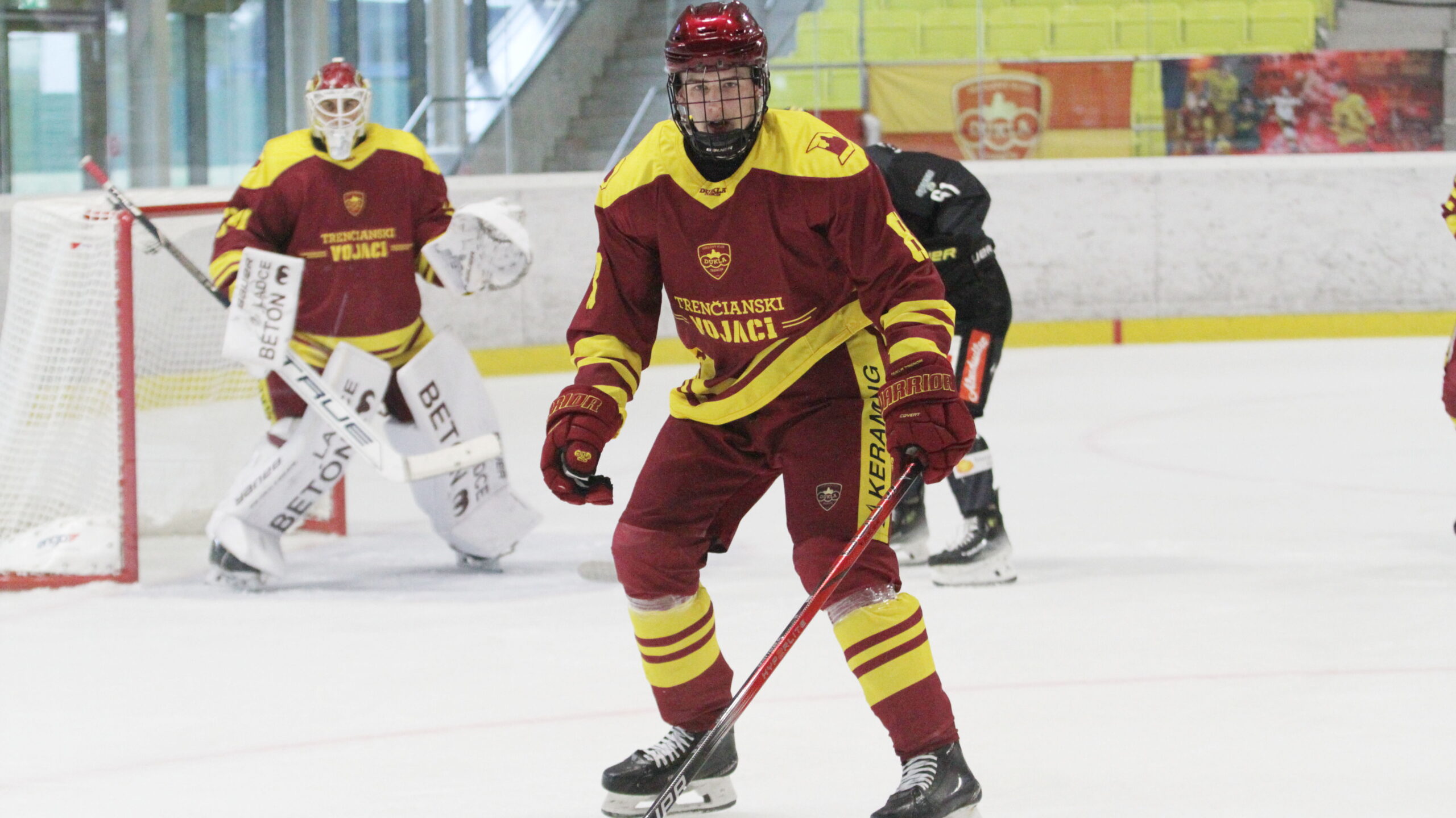 David Hrenak #34, Adam Goljer #8, Pre Game Vienna Capitals – HK Dukla Trencin, Steffl Arena 3, © Puckfans.at / Andreas Robanser