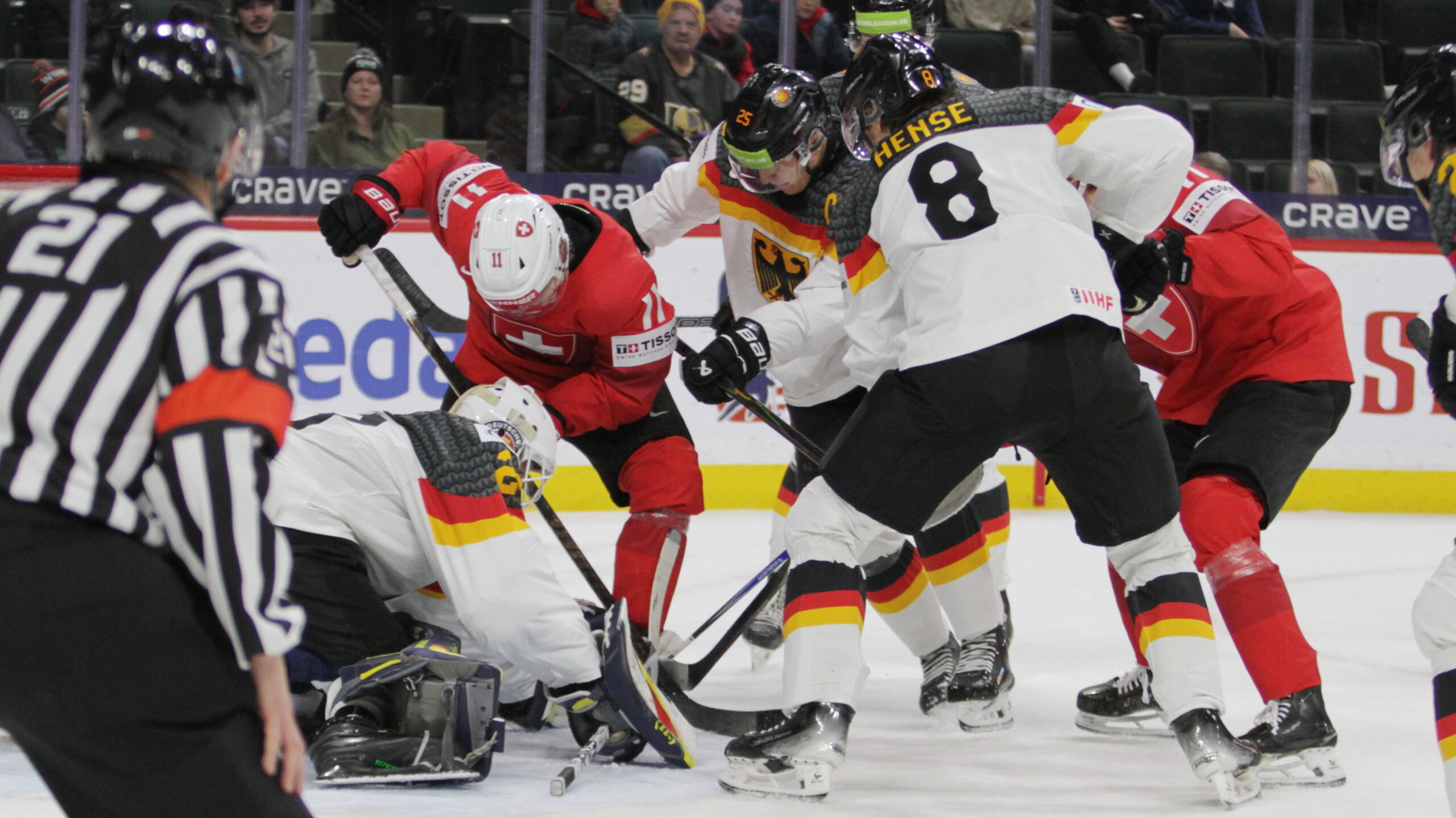 Lennart Neisse #29, Nathan Borradori #11, Tobias Schwarz #25, Max Hense #8, World Juniors 2026 SUI – GER, Grand Casino Arena, Saint Paul © Puckfans.at / Andreas Robanser