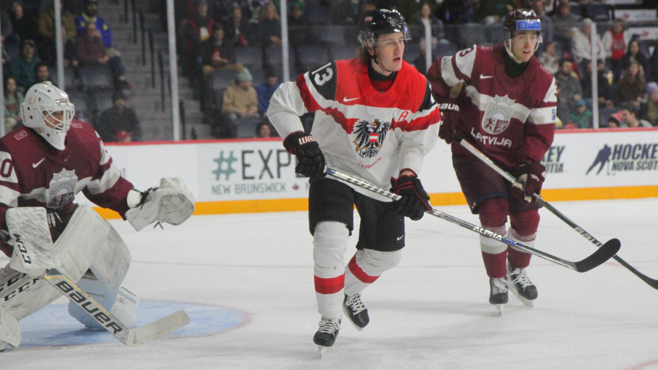 IMG_6037 2. Januar 2023 2560 × 1440 IMG_6037 IIHF World Juniors 2023 Relegation Game 1 AUT – LAT Patriks Berzins #30, Luca Auer #13, Scotiabank Centre, Halifax © Puckfans.at / Andreas Robanser