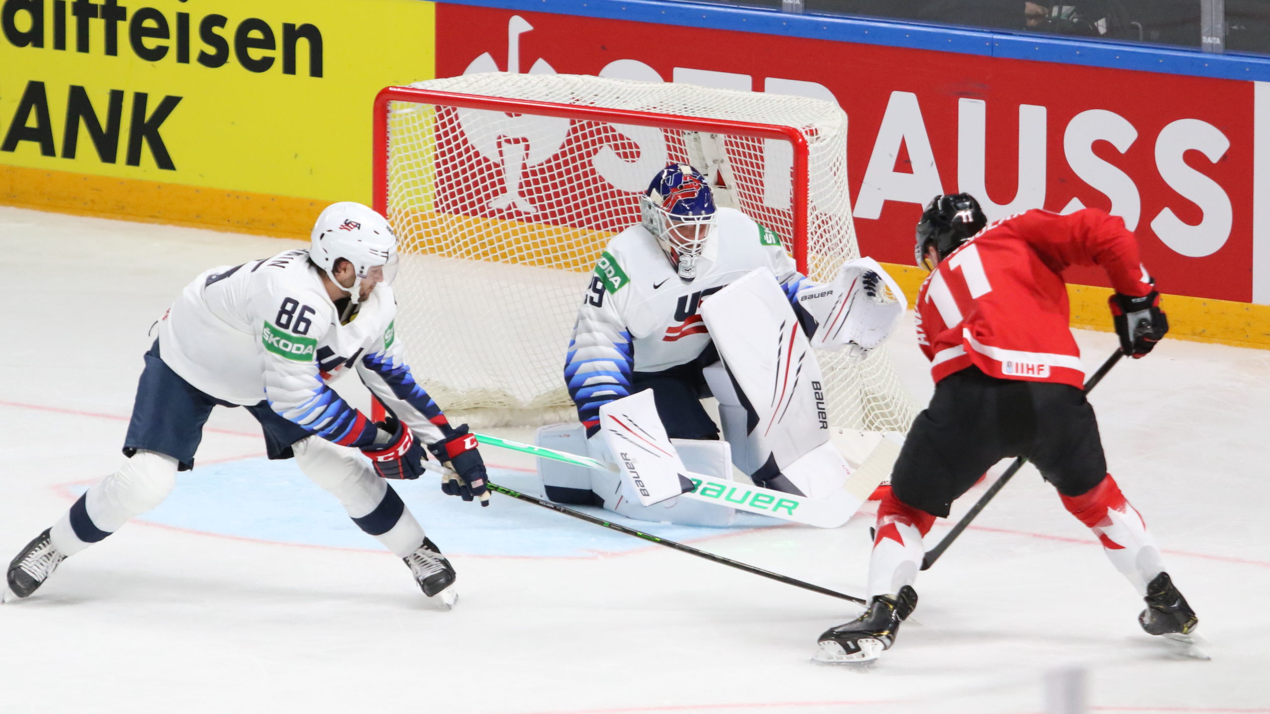 pf6T4A0195 23. Mai 2021 2560 × 1440 Kanada stolpert in die nächste Pleite IIHF World Championship 2021 CAN – USA Christian Wolanin #86, Jake Oettinger #29, Jaret Anderson-Dolan #11 Arena Riga © Puckfans.at/Andreas Robanser