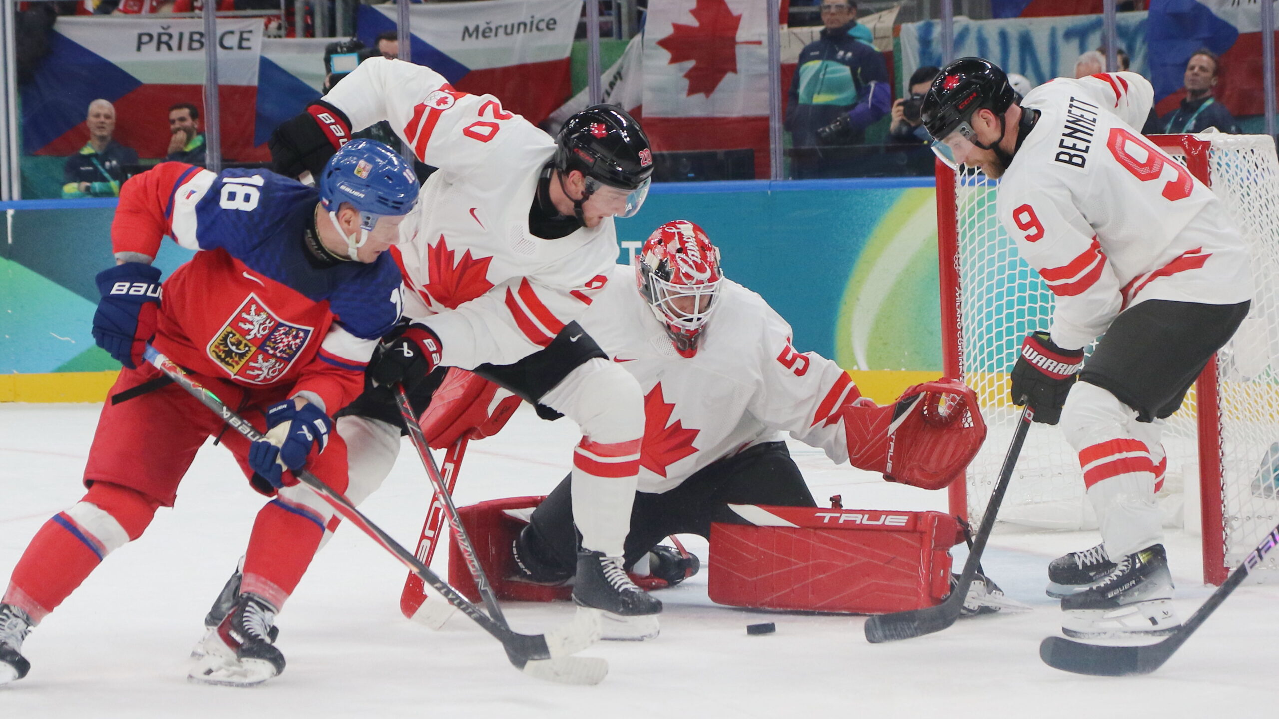 Ondrej Palat #18, Thomas Harley #20, Jordan Binnington #50, Sam Bennett #9, Olympic Games 2026 Mens Hockey CZE – CAN, Milano Santa Giulia Arena, © Puckfans.at / Andreas Robanser