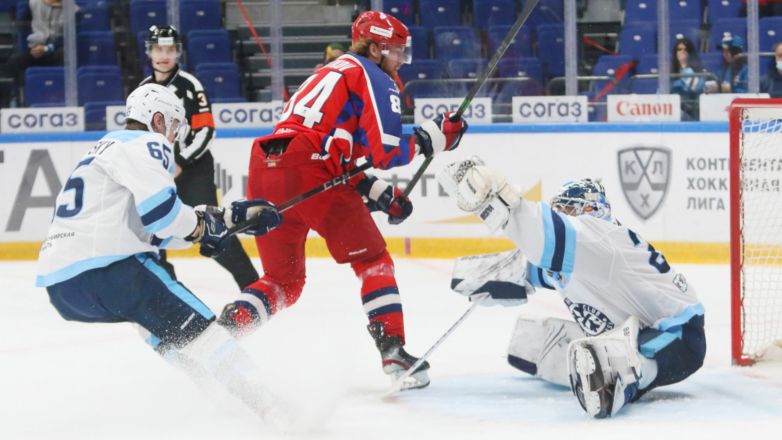 6T4A7235 29. September 2021 2560 × 1440 KHL Photo Gallery CSKA Moscow – Sibir Novosibirsk 1:0 OT CSKA Moscow – Sibir Novosibirsk Michal Cajkovsky #65, csk-84 #84, Harri Sateri #29 CSKA Arena, Moscow © Puckfans.at/Andreas Robanser