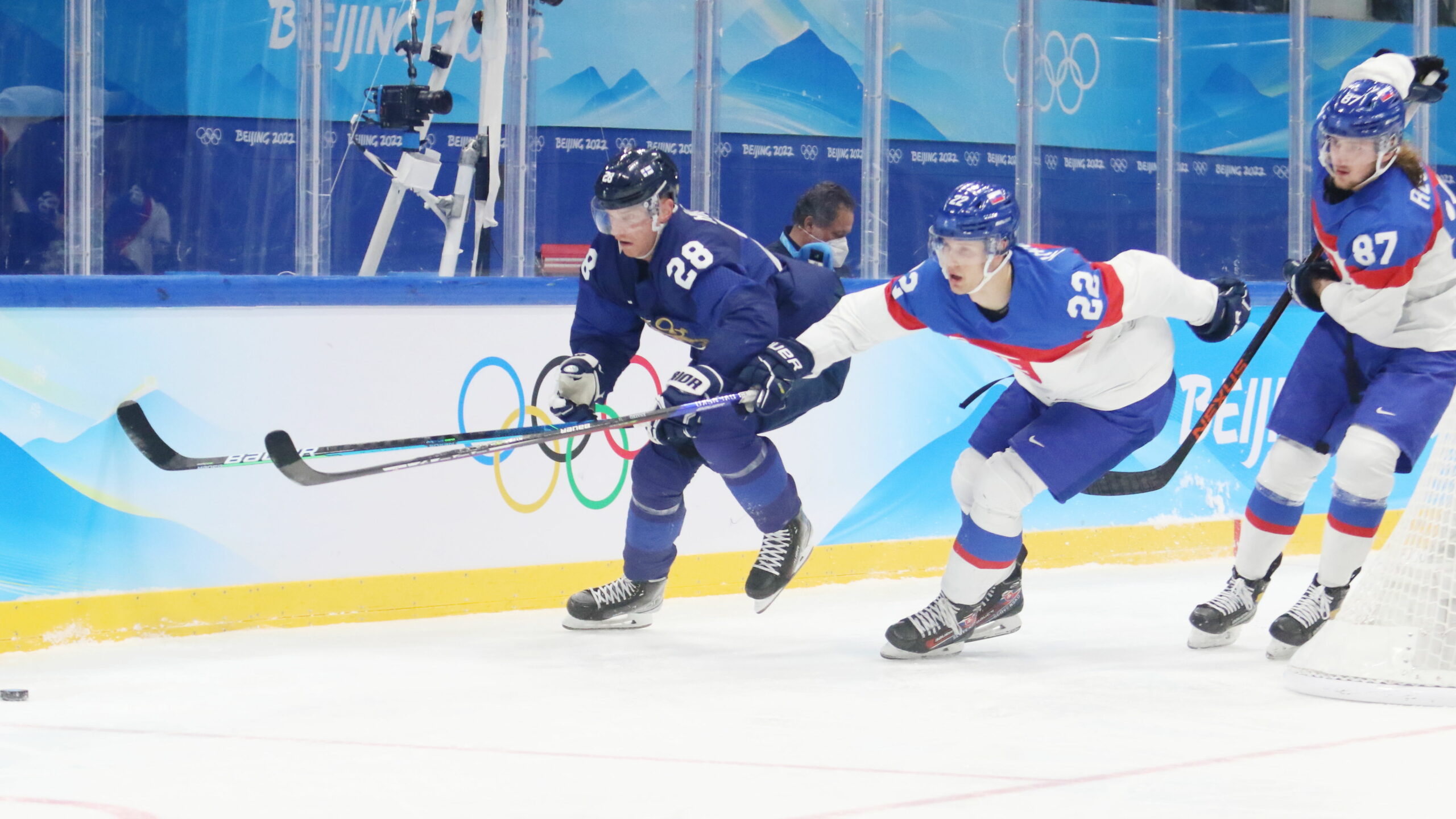 p6T4A1238 18. Februar 2022 2560 × 1440 p6T4A1238 Olympic Games 2022 Hockey Men Semifinal FIN – SVK Joonas Nättinen #28, Samuel Knazko #22, Pavol Regenda #87 National Indoor Stadium, Beijing © Andreas Robanser