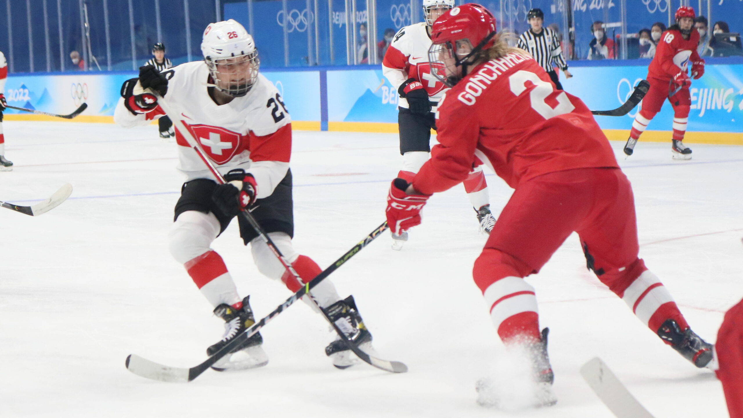 p6T4A8692 12. Februar 2022 2560 × 1440 p6T4A8692 Olympic Games 2022, Hockey Tournament Women 1/4Final ROC – SUI, Dominique Rüegg #26, Angelina Goncharenko #2 Wukesong Sports Centre, Beijing © Andreas Robanser