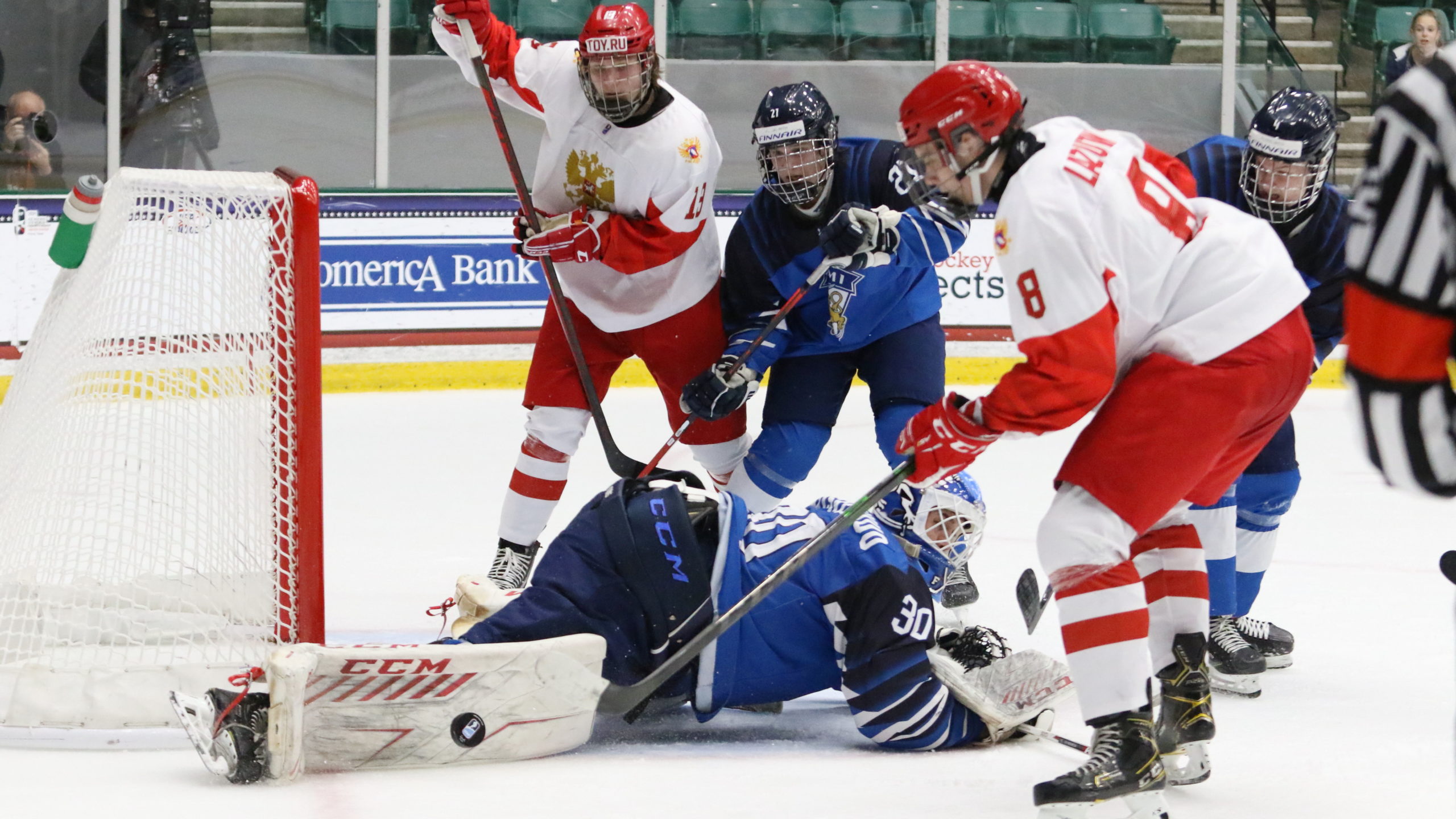 pf6T4A5692 6. Mai 2021 2560 × 1440 pf6T4A5692 IIHF U18 World Championship 2021 Semifinal: FIN – RUS Nikita Chibrikov #19, Samu Tuomaala #27, Aku Koskenvuo #30, Daniil Lazutin #8 Comerica Center, Frisco © Puckfans.at/Andreas Robanser