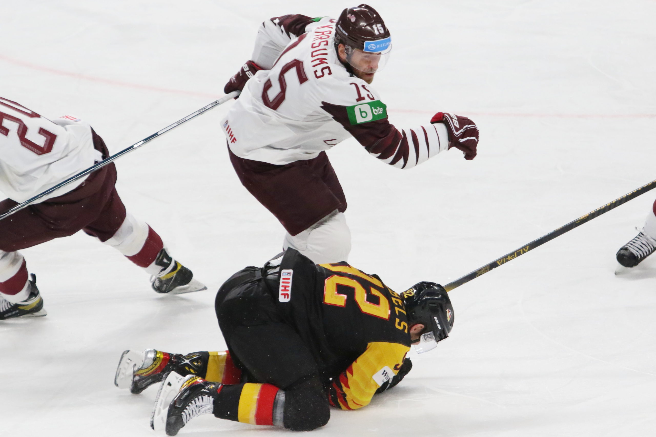 pfIMG_0056_1 1. Juni 2021 2560 × 1706 pfIMG_0056_1 IIHF World Championship 2021 GER – LAT Martins Karsums #15, Marcel Noebels #92 Arena Riga © Puckfans.at/Andreas Robanser