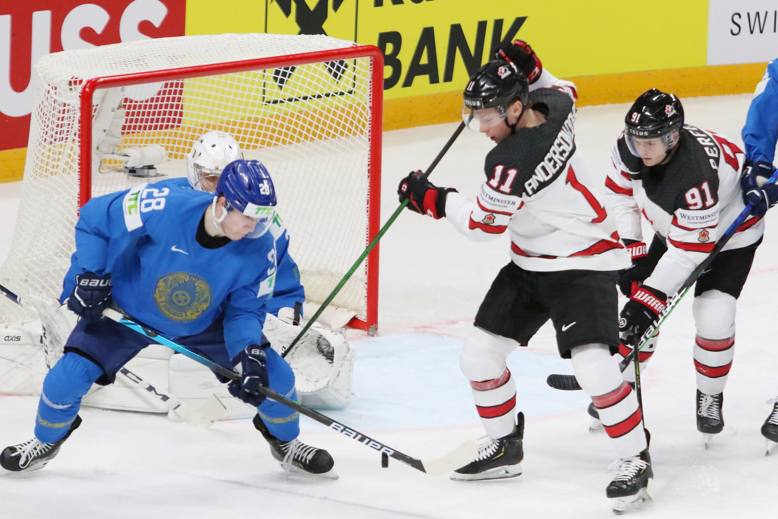 pfIMG_0059 28. Mai 2021 2560 × 1706 pfIMG_0059 IIHF World Championship 2021 KAZ – CAN Arena Riga Valeri Orekhov #28, Andrei Shutov #31, Jaret Anderson-Dolan #11, Cole Perfetti #91 © Puckfans.at/Andreas Robanser