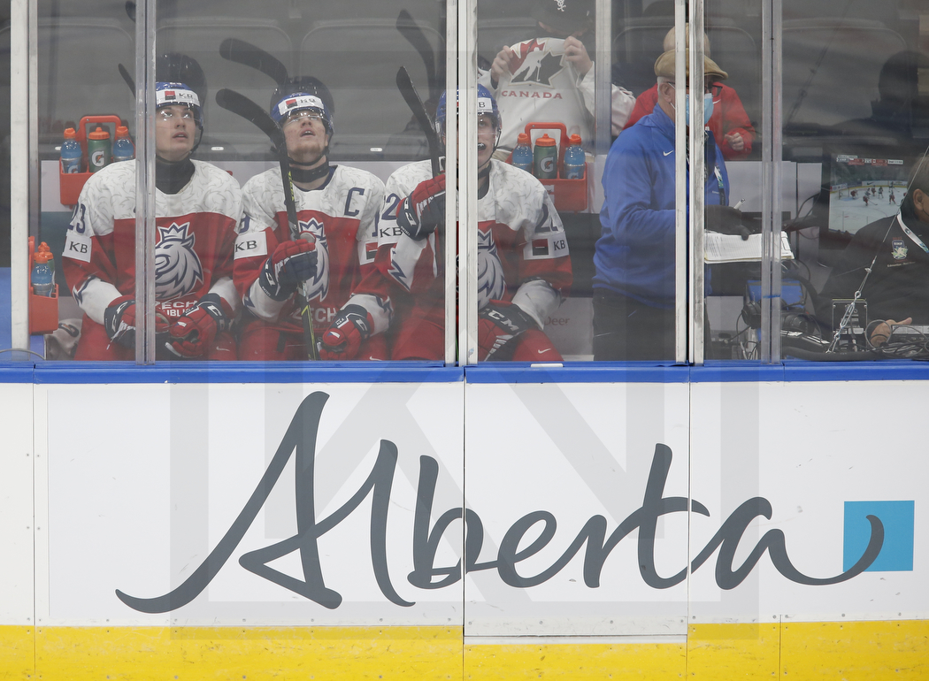 WK20211227_0340 27. Dezember 2021 1050 × 770 PHOTO GALLERY: CZE vs. CAN, World Juniors 2022, Edmonton; 26.12.2021 EDMONTON, CANADA, 27.Dec. 2021 – CZE vs. CAN. Image shows three Czech players in the penalty box at the same time. Photo: Werner Krainbucher