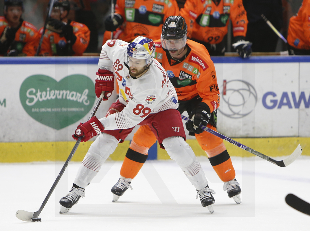 WK20221120_0436 20. November 2022 1050 × 784 ICEHL PHOTO GALLERY: Graz 99ers vs. Salzburg 1:0 GRAZ, AUSTRIA, 20.Nov. 2022 – Moser Medical Graz 99ers vs. EC Red Bull Salzburg. Image shows Florian BALTRAM #89 (EC Red Bull Salzburg) & Michael SCHIECHL #13 (Moser Medical Graz 99ers). Photo: Werner Krainbucher