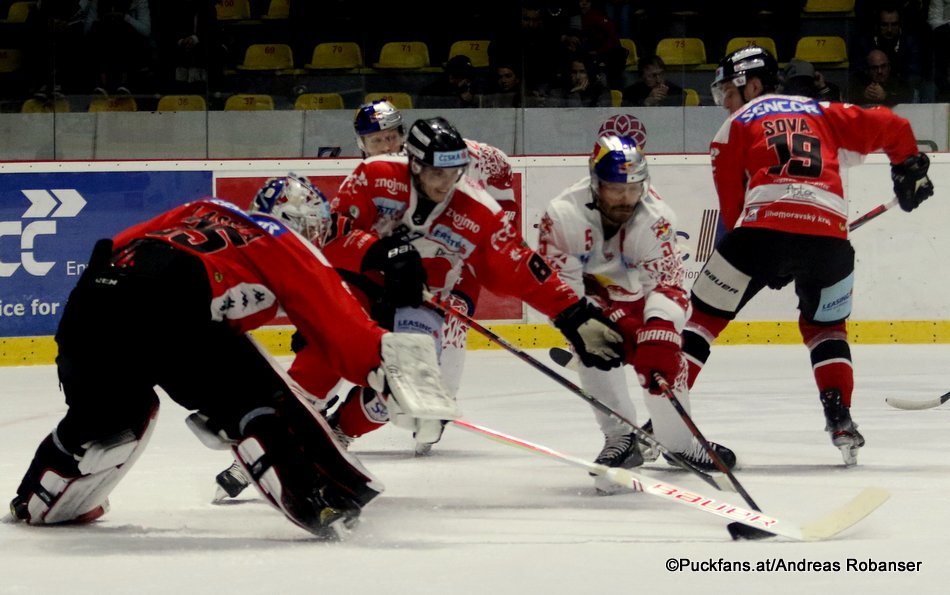 6T4A1347 20. Oktober 2019 950 × 595 Photo Gallery HC Orli Znojmo – EC Red Bull Salzburg Round 12 HC Orli Znojmo – EC Red Bull Salzburg Teemu Lassila #35, Thomas Raffl #5 Nevoga Arena, Znojmo ©Puckfans.at/Andreas Robanser