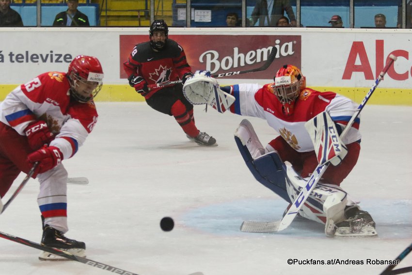 6T4A8002 10. August 2019 850 × 567 Photo Gallery: Hlinka Gretzky Cup 2019, Final CAN – RUS Hlinka Gretzky Cup 2019, Final CAN – RUS Vasili Ponomaryov #13, Hendrix Lapierre #18, Yaroslav Askarov #1 Zimni Stadion, Breclav ©Puckfans.at/Andreas Robanser