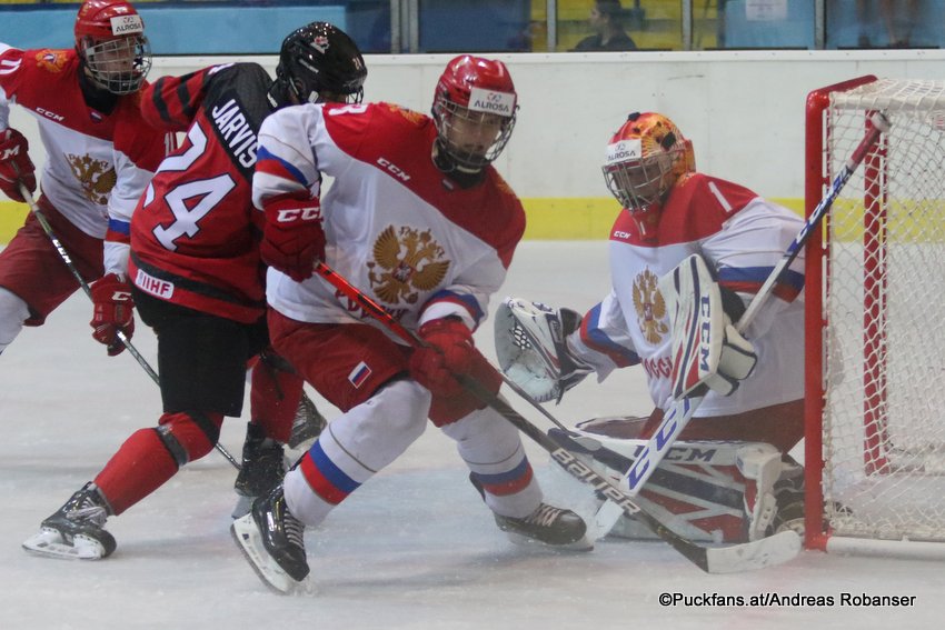 6T4A8198 10. August 2019 850 × 567 Photo Gallery: Hlinka Gretzky Cup 2019, Final CAN – RUS Hlinka Gretzky Cup 2019, Final CAN – RUS Seth Jarvis #24, Yaroslav Askarov #1 Zimni Stadion, Breclav ©Puckfans.at/Andreas Robanser