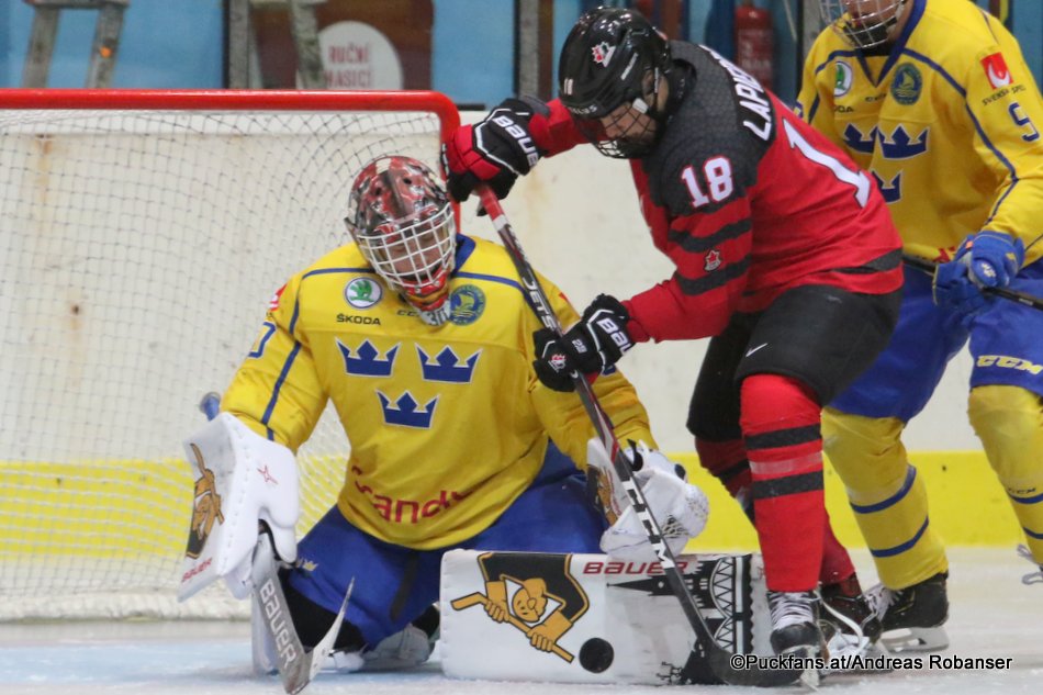 6T4A7024 9. August 2019 950 × 633 Photo Gallery: Hlinka Gretzky Cup 2019, Semifinal CAN – SWE Hlinka Gretzky Cup 2019, Semifinal CAN – SWE Jesper Wallstedt #30, Hendrix Lapierre #18 Zimni Stadion, Breclav ©Puckfans.at/Andreas Robanser