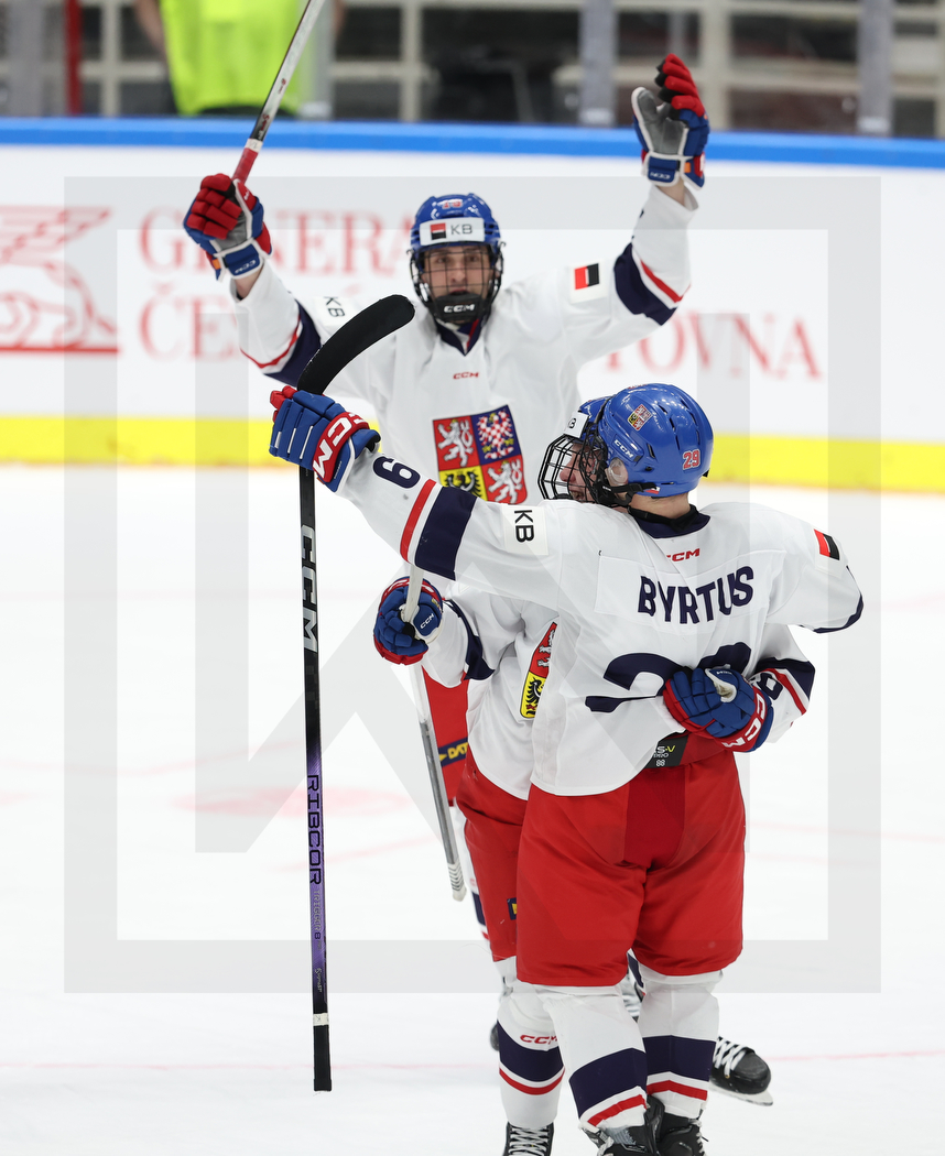 WK20250811_1535 11. August 2025 858 × 1050 PHOTO GALLERY HLINKA GRETZKY CUP 2025, CZE – SUI 6:2 BRNO, CZECH REPUBLIC, 11, Aug, 2025, Hlinka Gretzky Cup, CZE vs. SUI. Image shows Czech goal celebration. Photo: Werner Krainbucher