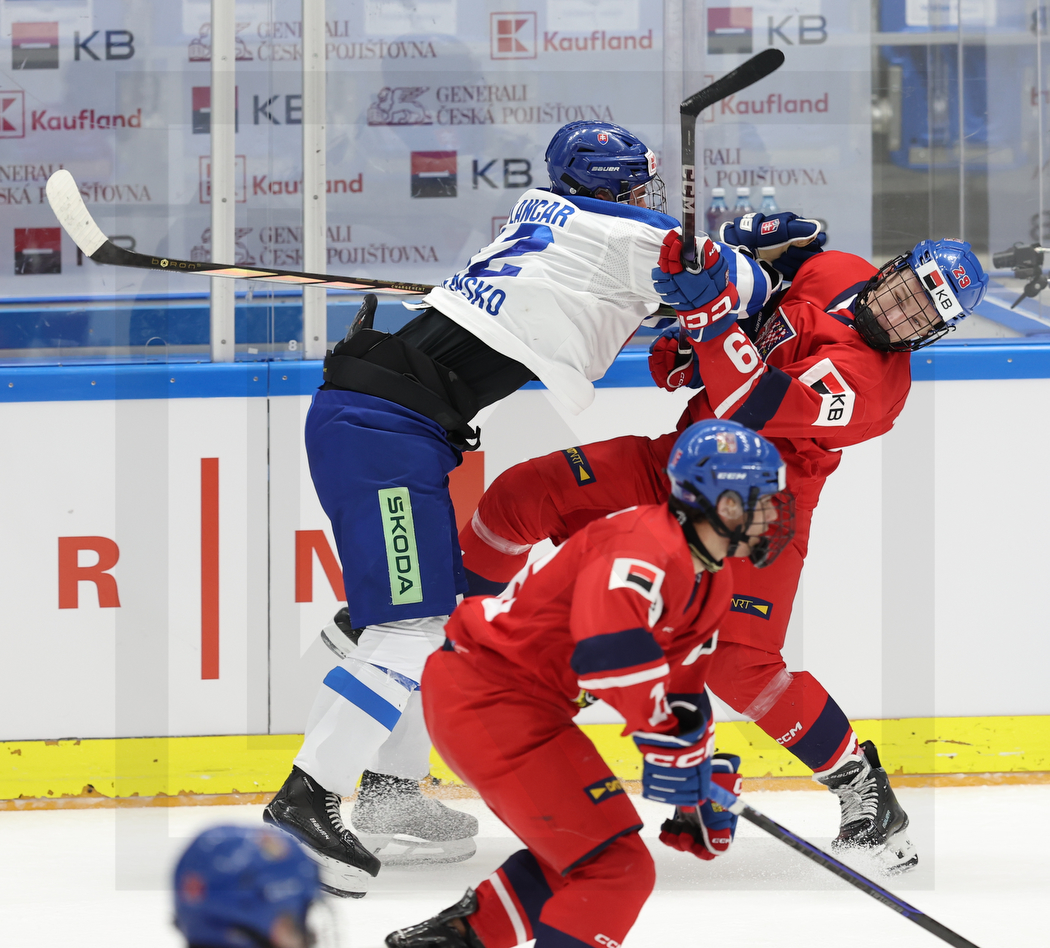 BRNO, CZECH REPUBLIC, 15, Aug, 2025, Hlinka Gretzky Cup, CZE vs. SVK . Image shows Michal PLANCAR #12 (Slovakia) & Dominick Radim BYRTUS #29 (Czech Republic). Photo: Werner Krainbucher