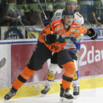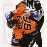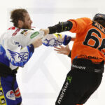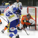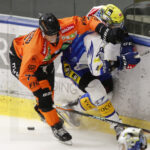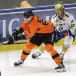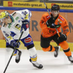 GRAZ, AUSTRIA, 28.Oct. 2022 – Moser Medical Graz 99ers vs. EC iDM Wärmepumpen VSV. Image shows Kevin MODERER #74 (EC iDM Wärmepumpen VSV) & Adis ALAGIC #66 (Moser Medical Graz 99ers). Photo: Werner Krainbucher
