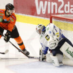 GRAZ, AUSTRIA, 28.Oct. 2022 – Moser Medical Graz 99ers vs. EC iDM Wärmepumpen VSV. Image shows Robert SABOLIC #55 (EC iDM Wärmepumpen VSV) & Christian ENGSTRAND #31 (Moser Medical Graz 99ers). Photo: Werner Krainbucher