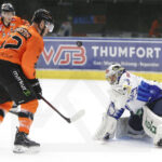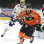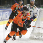 GRAZ, AUSTRIA, 28.Oct. 2022 – Moser Medical Graz 99ers vs. EC iDM Wärmepumpen VSV. Image shows Nicolas RIVETT-MATTINEN #52 (EC iDM Wärmepumpen VSV) & Viktor GRANHOLM #59 (Moser Medical Graz 99ers). Photo: Werner Krainbucher