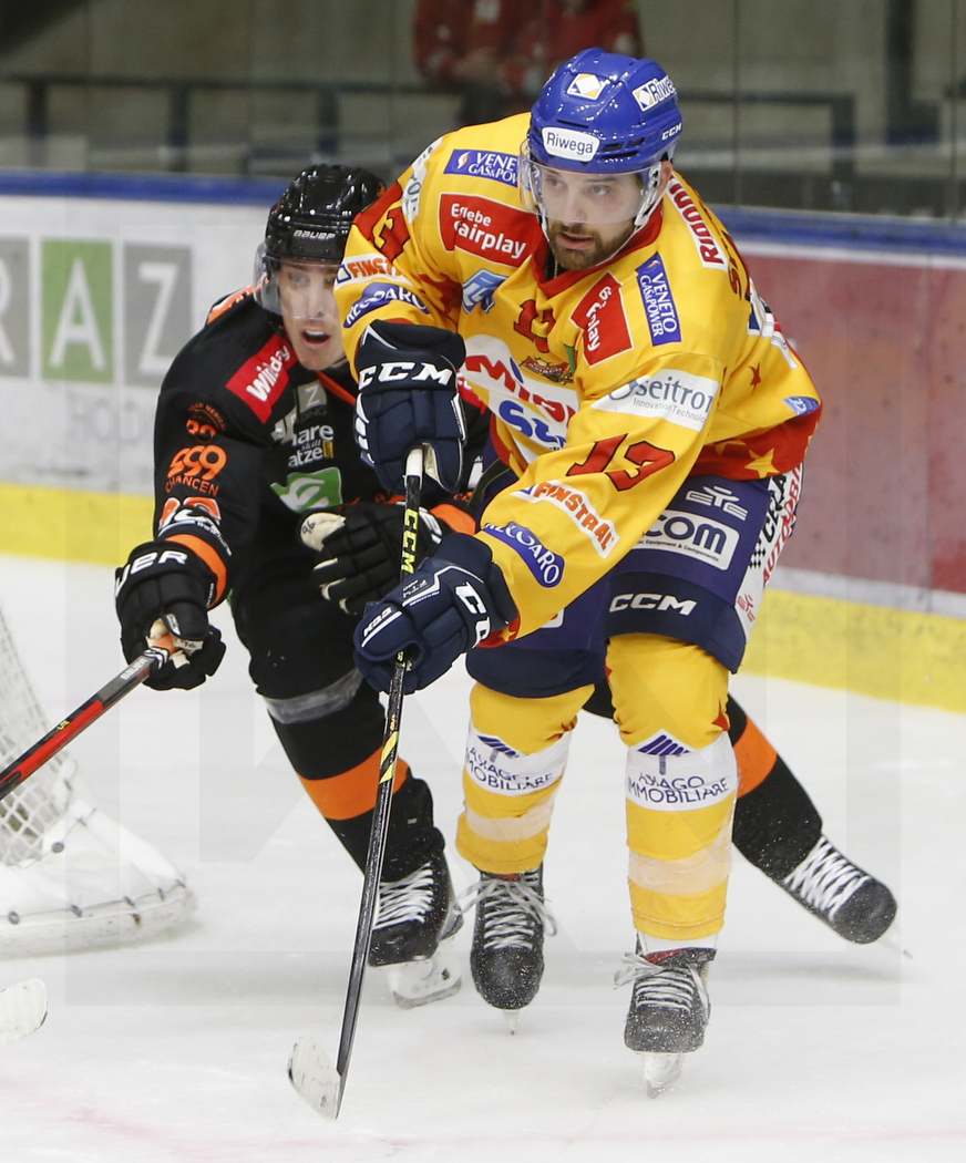 GRAZ, AUSTRIA, 16.Sep. 2022 – Moser Medical Graz 99ers vs. Migross Supermercati Asiago. Image shows Mike ZALEWSKI #96 (Moser Medical Graz 99ers) & Nick SARACINO #13 (Migross Supermercati Asiago). Photo: Werner Krainbucher