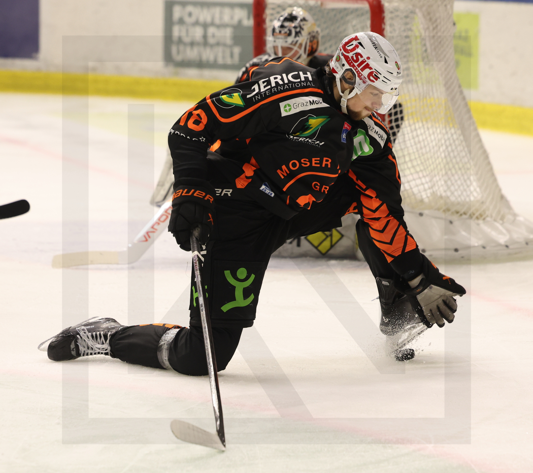 WK20251029_0360 29. Oktober 2025 1050 × 932 PHOTO GALLERY ICEHL ROUND 15 GRAZ 99ERS VS. PUSTERTAL 1:4 GRAZ, AUSTRIA, 29, Oct, 2025, Moser Medical Graz 99ers vs. HC Falkensteiner Pustertal. Image shows Paul STAPELFELDT #18 (Moser Medical Graz 99ers). Photo: Werner Krainbucher