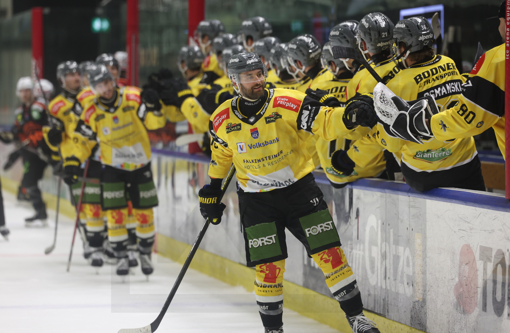 WK20251029_0604 29. Oktober 2025 1050 × 686 PHOTO GALLERY ICEHL ROUND 15 GRAZ 99ERS VS. PUSTERTAL 1:4 GRAZ, AUSTRIA, 29, Oct, 2025, Moser Medical Graz 99ers vs. HC Falkensteiner Pustertal. Image shows Nicholas Samuel SARACINO #18 (HC Falkensteiner Pustertal) after he scored the 3rd goal. Photo: Werner Krainbucher