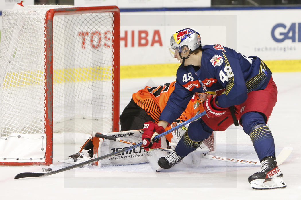 WK20231029_0352 29. Oktober 2023 1050 × 698 PHOTO GALLERY ICEHL ROUND 17 GRAZ 99ERS – EC RED BULL SALZBURG 1:2 GRAZ, AUSTRIA, 29.Oct. 2023 – Moser Medical Graz 99ers vs. EC Red Bull Salzburg . Image shows Lucas THALER #48 (EC Red Bull Salzburg) with a big chance. Photo: Werner Krainbucher