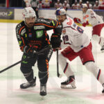 GRAZ, AUSTRIA, 14, Nov, 2025, Moser Medical Graz 99ers vs. EC Red Bull Salzburg. Image shows Nick BAILEN #7 (Moser Medical Graz 99ers) & Michael RAFFL #12 (EC Red Bull Salzburg). Photo: Werner Krainbucher