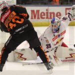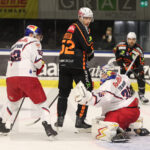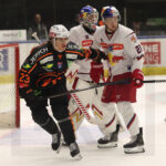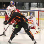 GRAZ, AUSTRIA, 14, Nov, 2025, Moser Medical Graz 99ers vs. EC Red Bull Salzburg. Image shows Tim HARNISCH #40 (Moser Medical Graz 99ers) & Atte TOLVANEN #35 (EC Red Bull Salzburg). Photo: Werner Krainbucher