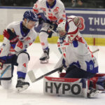 GRAZ, AUSTRIA, 16, Nov, 2025, Moser Medical Graz 99ers vs. HC TIWAG Innsbruck. Image shows Jan LATTNER #98 (HC TIWAG Innsbruck) & Matthew VERNON #30 (HC TIWAG Innsbruck). Photo: Werner Krainbucher