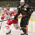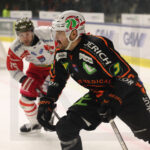 GRAZ, AUSTRIA, 23, Nov, 2025, Moser Medical Graz 99ers vs. HCB Südtirol Alperia. Image shows Maxime LEGACE #33 (Moser Medical Graz 99ers) & Dustin GAZLEY #10 (HCB Südtirol Alperia). Photo: Werner Krainbucher