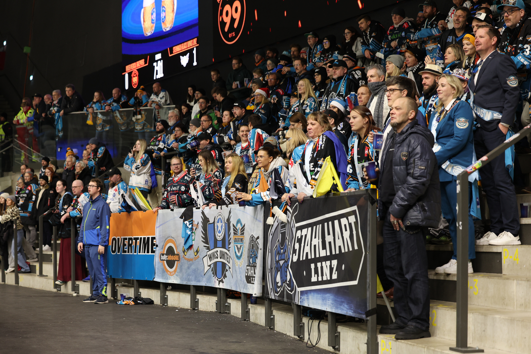 WK20251130_0230 30. November 2025 1050 × 700 PHOTO GALLERY ICEHL ROUND 25 GRAZ 99ERS VS. BLACK WINGS LINZ 3:2 GRAZ, AUSTRIA, 30, Nov, 2025, Moser Medical Graz 99ers vs. Steinbach Black Wings Linz. Image shows Linz fans. Photo: Werner Krainbucher