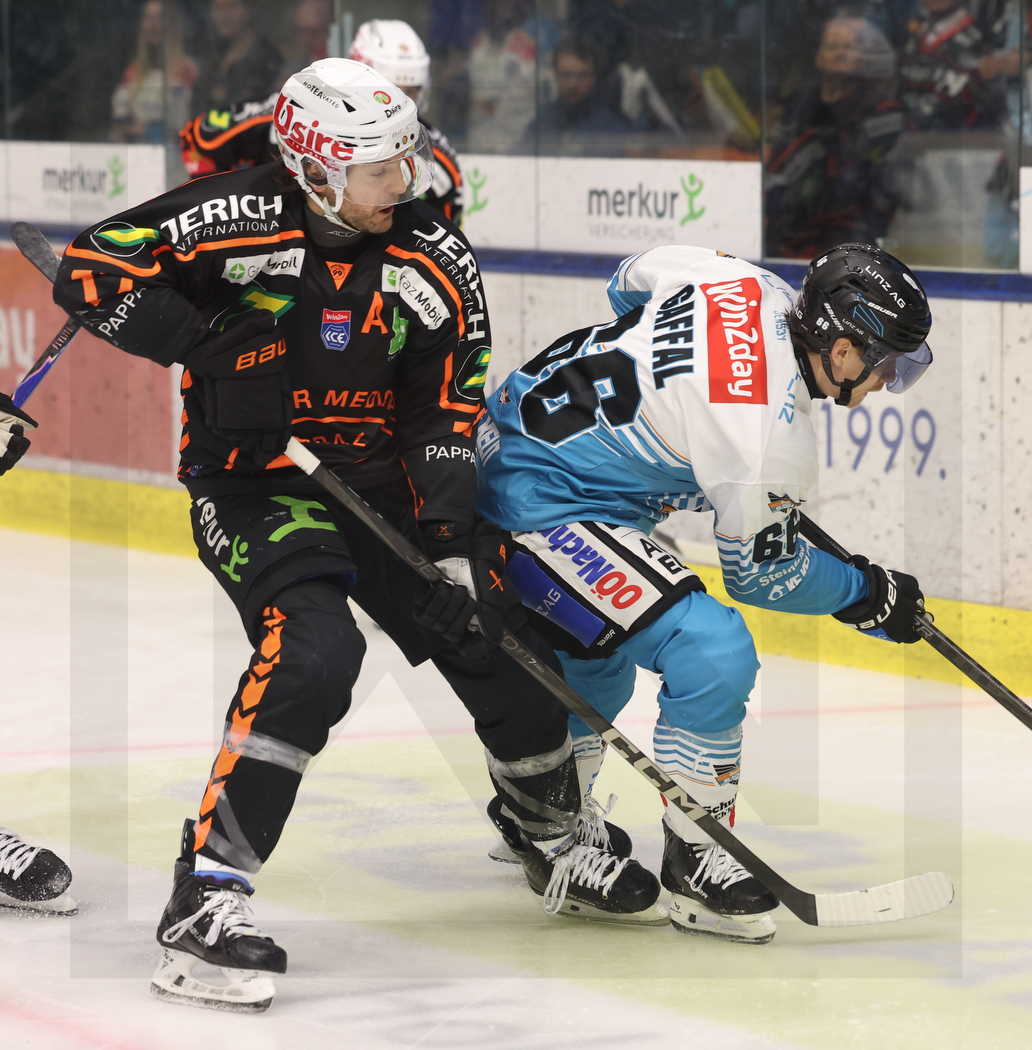 WK20251130_0407 30. November 2025 1032 × 1050 PHOTO GALLERY ICEHL ROUND 25 GRAZ 99ERS VS. BLACK WINGS LINZ 3:2 GRAZ, AUSTRIA, 30, Nov, 2025, Moser Medical Graz 99ers vs. Steinbach Black Wings Linz. Image shows Manuel GANAHL #17 (Moser Medical Graz 99ers) & Stefan GAFFAL #66 (Steinbach Black Wings Linz). Photo: Werner Krainbucher