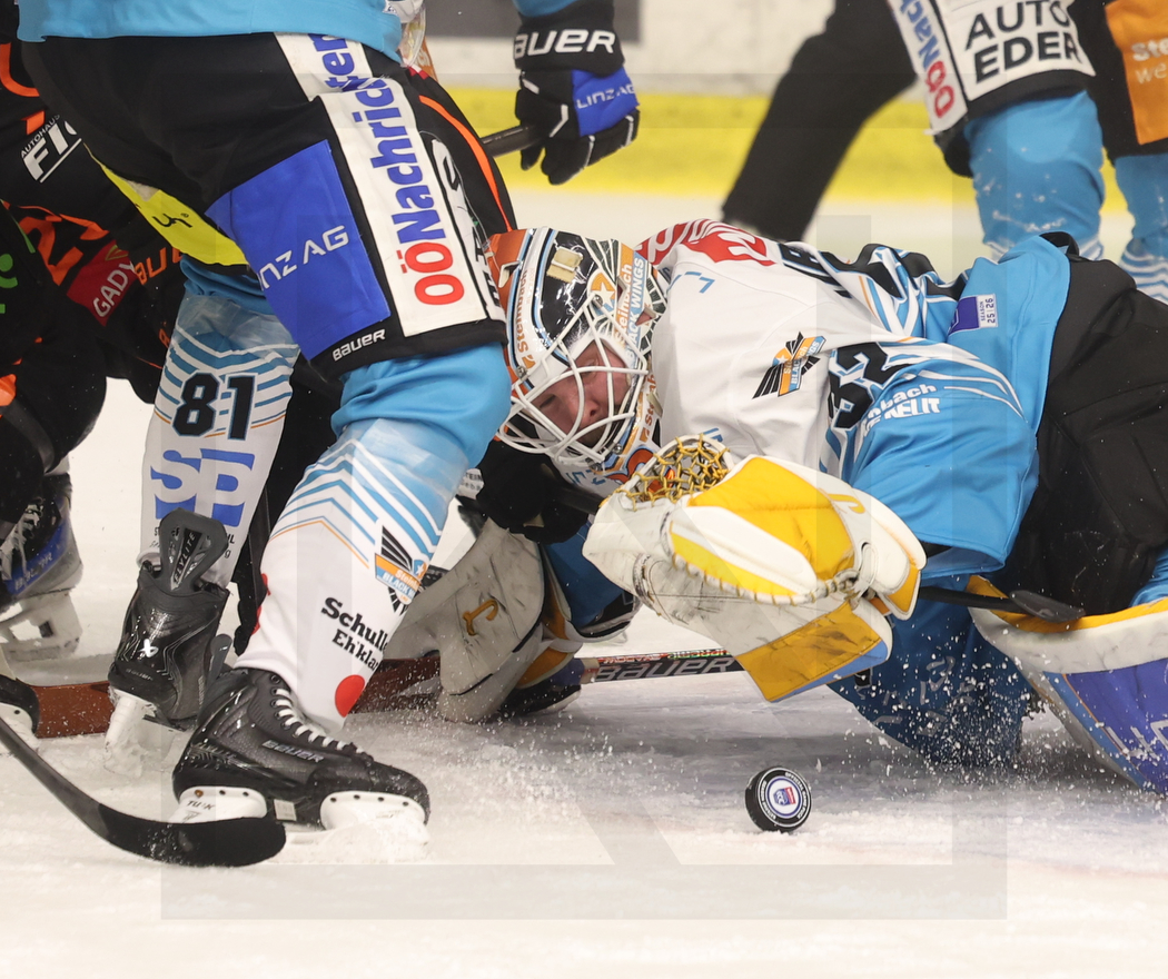 WK20251130_0590 30. November 2025 1050 × 880 PHOTO GALLERY ICEHL ROUND 25 GRAZ 99ERS VS. BLACK WINGS LINZ 3:2 GRAZ, AUSTRIA, 30, Nov, 2025, Moser Medical Graz 99ers vs. Steinbach Black Wings Linz. Image shows Rasmus TIRRONEN #32 (Steinbach Black Wings Linz) try to catch the puck. Photo: Werner Krainbucher