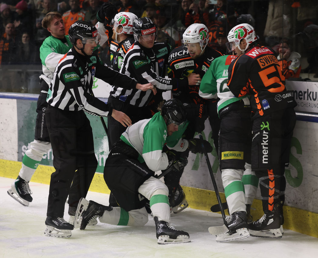 17. Dezember 2025 1050 × 852 PHOTO GALLERY ICEHL ROUND 29 GRAZ 99ERS VS. OLIMPIJA LJUBLJANA 2:3 SO