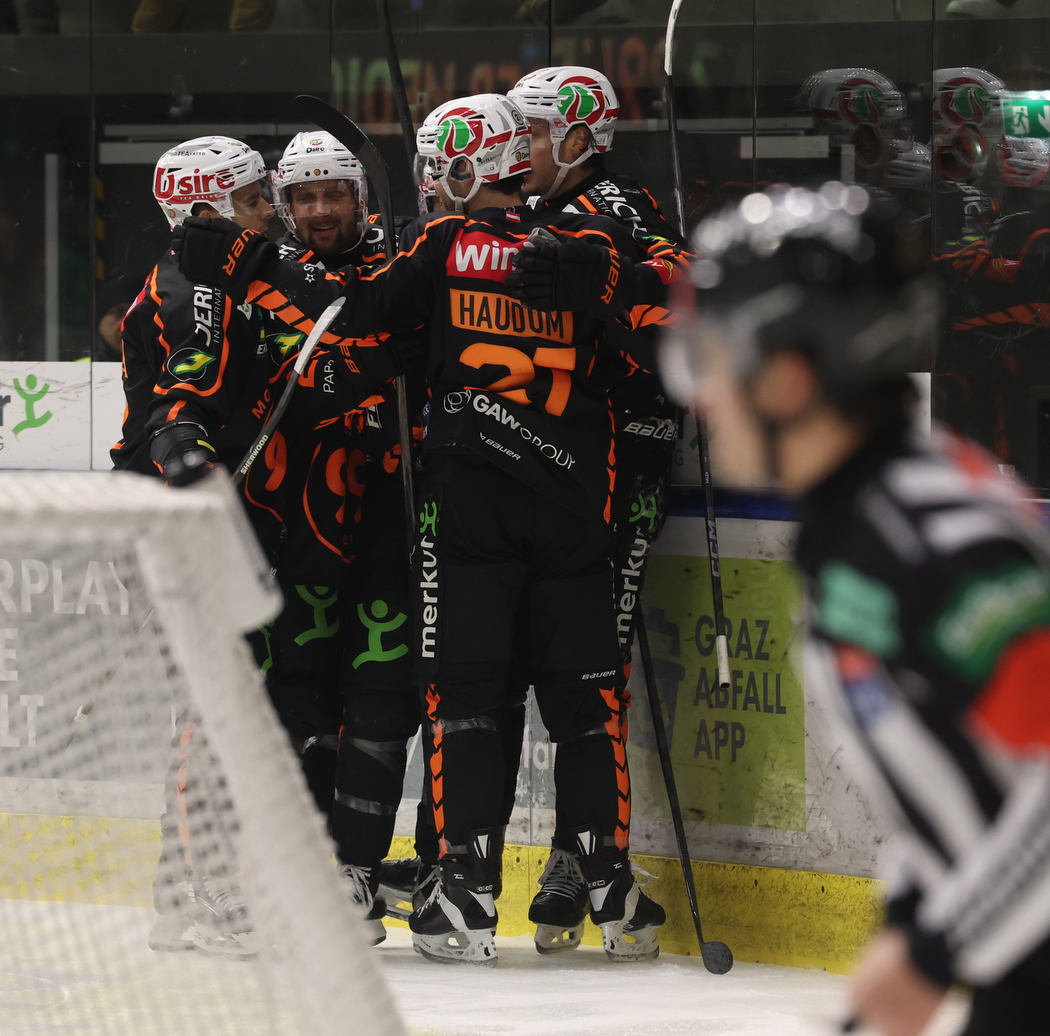 GRAZ, AUSTRIA, 17, Dec, 2025, Moser Medical Graz 99ers vs. Olimpija Ljubljana. Image shows 99ers goal celebration. Photo: Werner Krainbucher