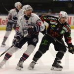 GRAZ, AUSTRIA, 19, Dec, 2025, Moser Medical Graz 99ers vs. Hydro Fehervar AV 19. Image shows Balint MAGOSI #82 (Hydro Fehervar AV 19) & Chris COLLINS #10 (Moser Medical Graz 99ers). Photo: Werner Krainbucher