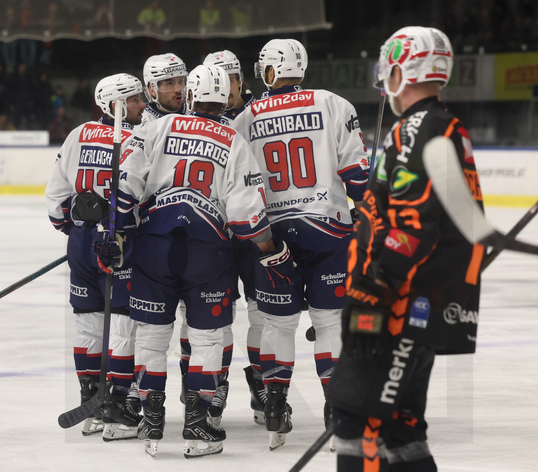 GRAZ, AUSTRIA, 19, Dec, 2025, Moser Medical Graz 99ers vs. Hydro Fehervar AV 19. Image shows goal celebration Fehervar. Photo: Werner Krainbucher