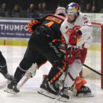GRAZ, AUSTRIA, 23, Jan, 2026, Moser Medical Graz 99ers vs. EC Red Bull Salzburg. Image shows Lukas HAUDUM #21 (Moser Medical Graz 99ers) & Atte TOLVANEN #35 (EC Red Bull Salzburg). Photo: Werner Krainbucher