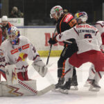 GRAZ, AUSTRIA, 23, Jan, 2026, Moser Medical Graz 99ers vs. EC Red Bull Salzburg. Image shows Atte TOLVANEN #35 (EC Red Bull Salzburg), Manuel GANAHL #17 (Moser Medical Graz 99ers) & Tyler James LEWINGTON #2 (EC Red Bull Salzburg). Photo: Werner Krainbucher