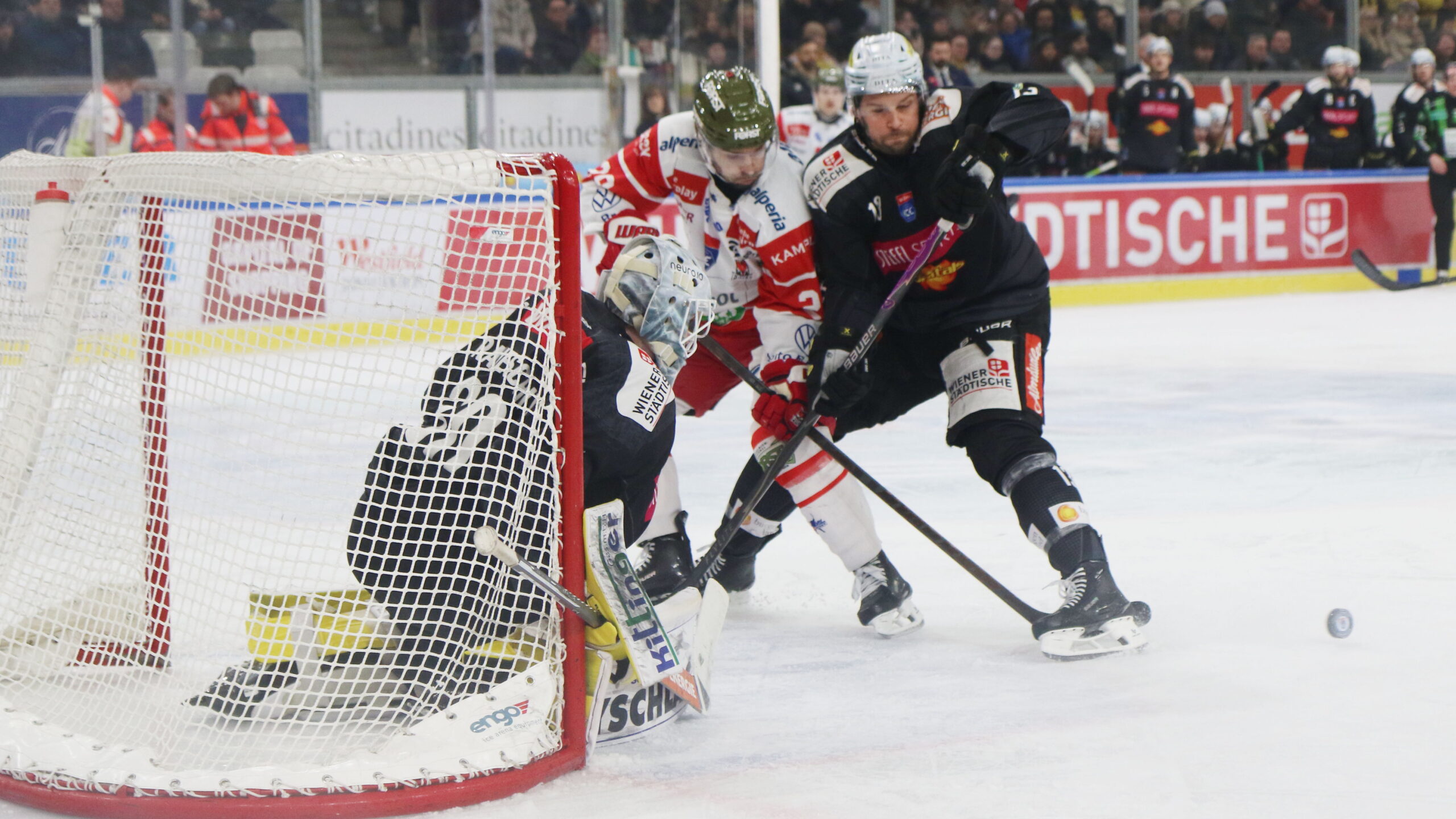 6T4A8737 25. Januar 2026 2560 × 1440 Photo Gallery ICEHL Round 43 Vienna Capitals – HCB Südtirol 3:0 Sebastian Wraneschitz #30, Shane Gersich #29, ICEHL Round 43 Vienna Capitals – HCB Südtirol, Steffl Arena, © Puckfans.at / Andreas Robanser