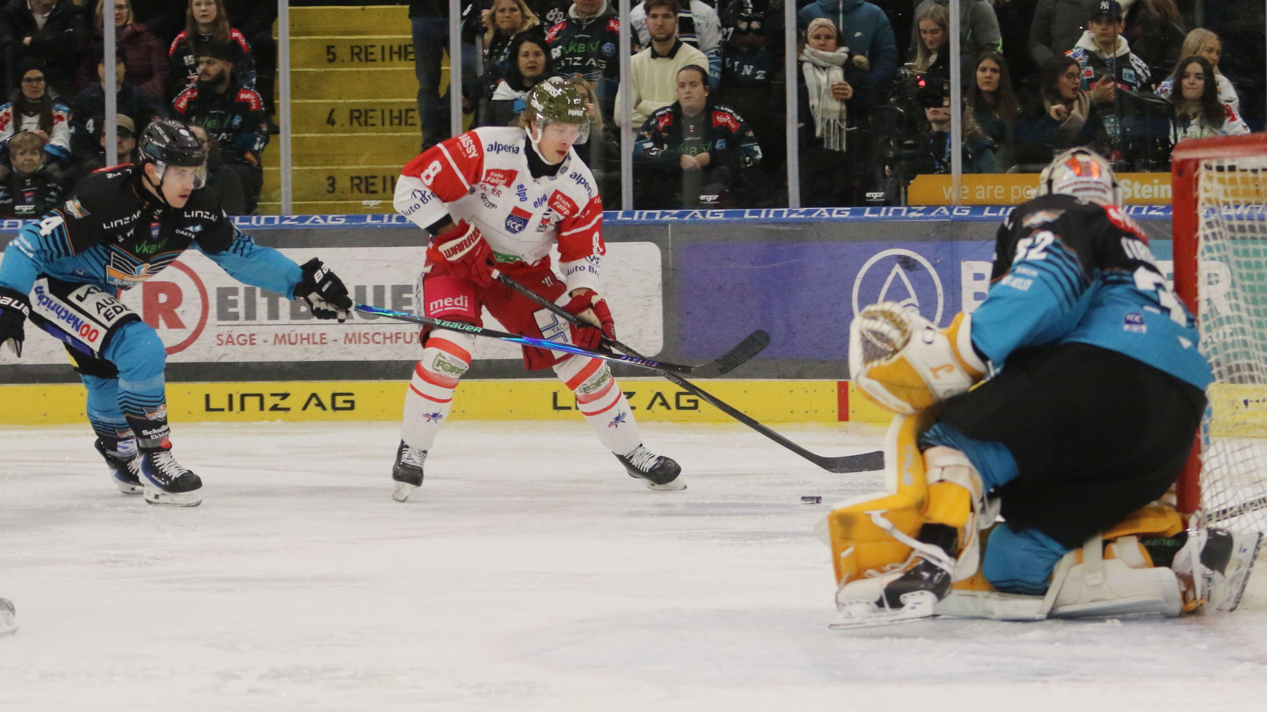 Ryan MacKinnon #4, Max Gildon #8, Rasmus Tirronen #32, ICEHL Round 44 Black Wings Linz – HCB Südtirol, Linz AG Eisarena, © Puckfans.at / Andreas Robanser