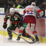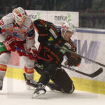 GRAZ, AUSTRIA, 22, Feb, 2026, Moser Medical Graz 99ers vs. EC KAC. Image shows Chris COLLINS #10 (Moser Medical Graz 99ers) & Jordan MURRAY #47 (EC KAC). Photo: Werner Krainbucher
